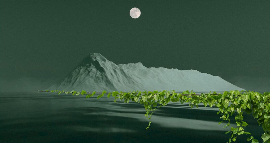 He checked the other slits. Here, the leaf from an apple lost in cold storage had begun to sprout new buds; there, the seeds from a discarded tangerine bumped under his skin. The eyes of an old sweet potato had begun at last to vine, their ghostly white heads peeking out from his arms. On his face, he found one tiny, spade-shaped leaf growing near his hairline. It had been neatly covered by his bandana and emerged a happy surprise.